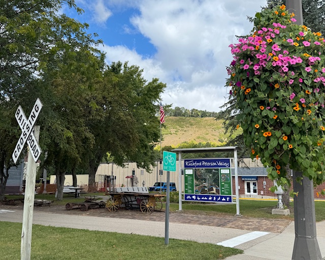 The old train depot, in Rushford, is currently being renovated. Next door was an old school, a chapel and a jail house. Presumably those three buildings, along with the depot, will be part of the trailhead museum when all is finished. The town of Rushford, population 1,852, seems to be growing.
