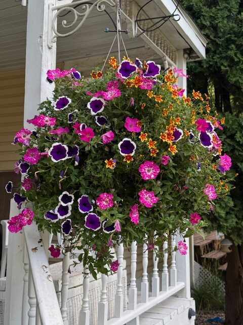 It was picturesque with green bluffs, the blue skies and puffy white clouds. A great day for a gorgeous drive. The place we stayed had some beautiful annual hanging baskets that are still vibrant.