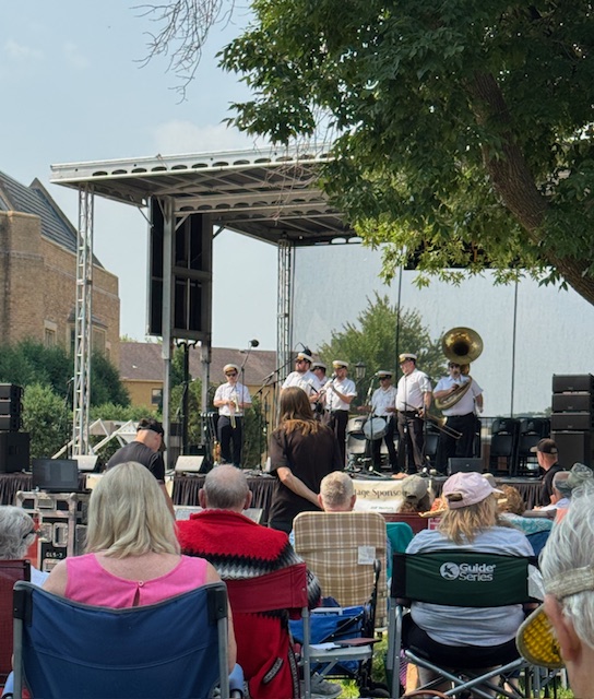 It’s a very enjoyable event, and last Saturday was a lovely weather day in Minnesota. Prime for an outdoor concert. Folks bring lawn chairs and sit a while (or all day) and listen to the music. Or, it’s great background music for walking around the River Walk Market Fair to shop for locally-grown produce or locally-made handcrafts.