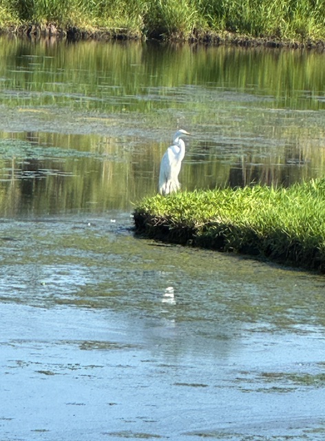 As we drove to the bike trail, we passed an egret near a pond, standing tall and beautiful.