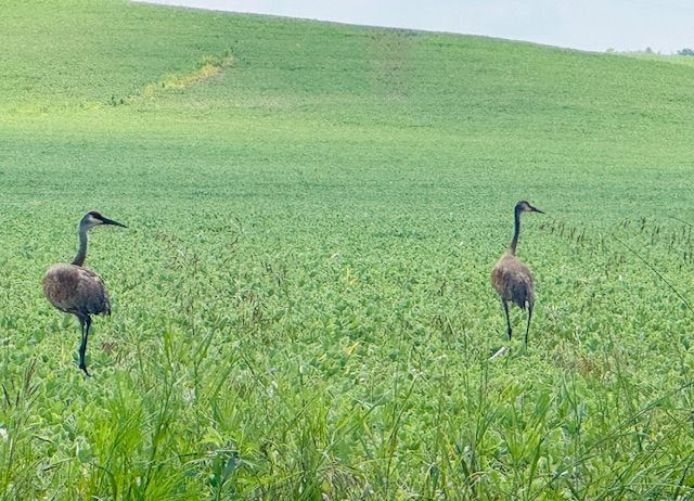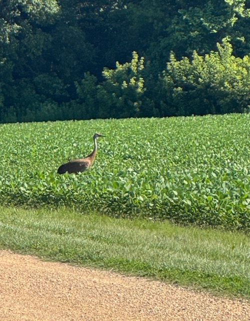 We stopped to watch a lone sandhill crane look at us and then walk across a field…I wonder where his mate and friends were? (Two days later we saw a pair of Sandhill cranes in a different field.)