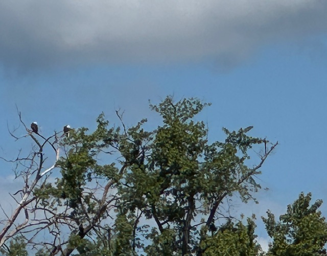 Two eagles in the tree tops in Colvill Park.