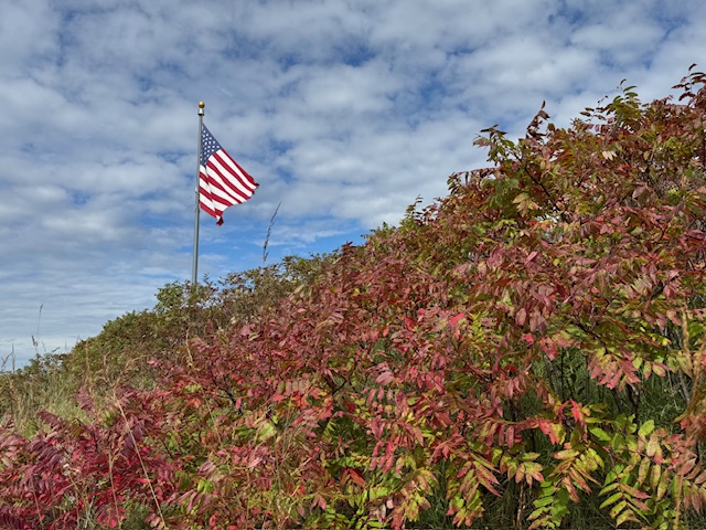 The flag flies on the top of Barn Bluff. The sumac was already turning color…oh my!