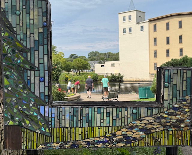 I noticed this “new to me” mosaic art installment on Bridge Square. From this angle, it frames the original Ames Mill and the dam on the Cannon River.