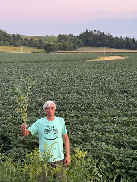 We put it in a vase of water and stuck it in the corner of our patio for future reference, and for decoration. It’s slowly fading away, but the crop of soybeans in the field behind us is thriving.