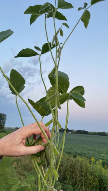 This seemed to be a good time to pull up a soybean stalk from the field behind us. I’ve been waiting to do this. I have never seen a soybean plant up close. All summer we have been watching fields of soybeans grow in our “backyard” and I was curious what they looked like.