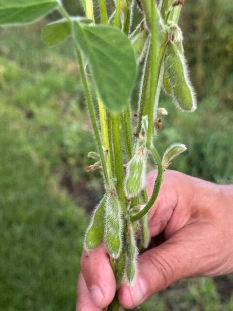 A soybean stalk up close.
