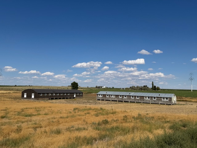 A barrack and the mess hall at Minidoka Internment camp.