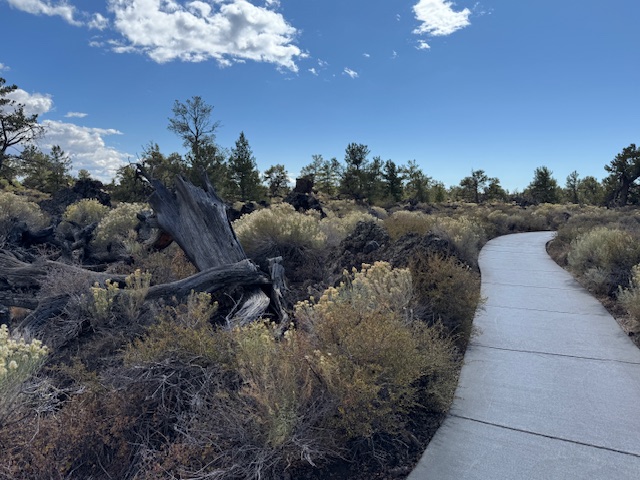 The short hike through Devil’s Orchard was level, and paved, and I felt like we were walking through a strange botanical garden. Although we missed the peak for wildflowers in the park, there is amazingly diverse plant life in these lava fields. Most common is the sagebrush.