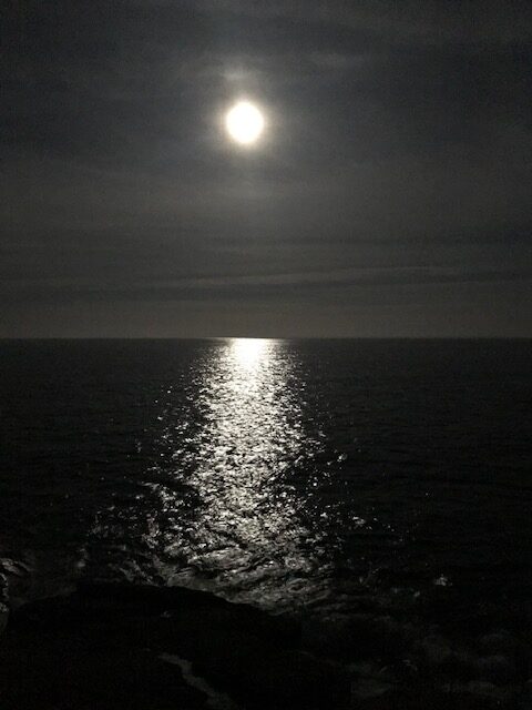 This year however, for the first time in forty years, we saw the moon rise over the lake. We have often seen a full moon shining on the lake (and a few times soon after it rose over the lake), but we’ve never seen it rising.