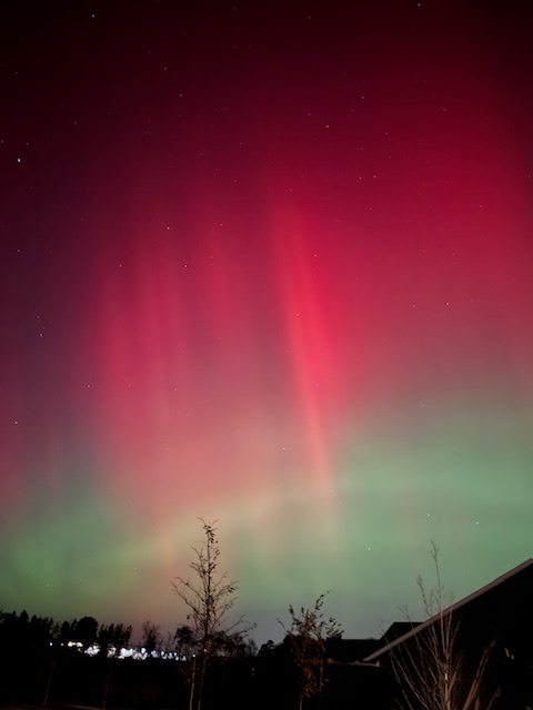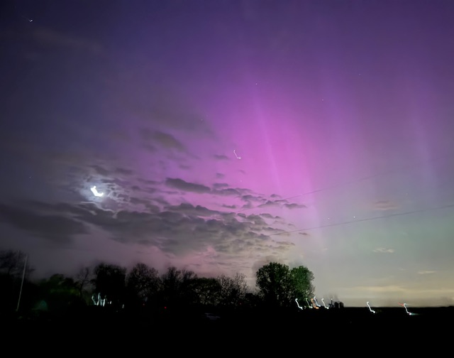 However, in May 2024, having heard on the news the northern lights may be visible, I drove a mile out-of-town to watch for them. There were several of us folks who had driven away from the city lights to look for them. There was excitement in the air as we did witness a spectacular light show.