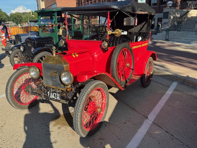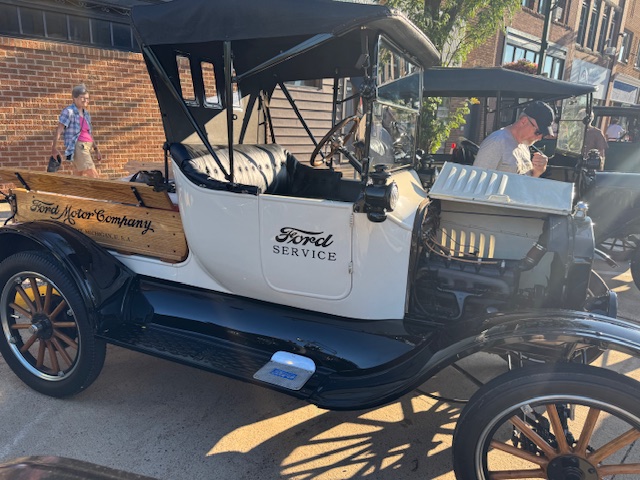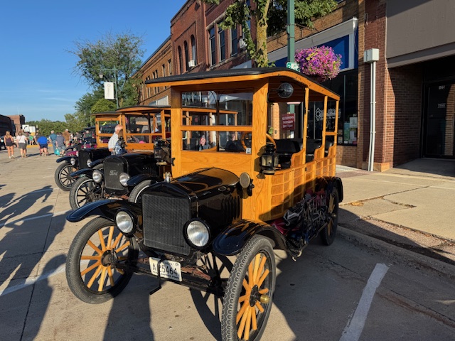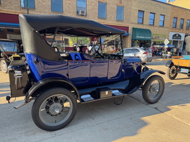 The town hosts an evening for the club to display their Model T’s, also known as Tin Lizzies. The cars lined up on Broadway Street in Owatonna, for folks to come and ooh and aah over the classic cars. Most were refurbished and shiny, others had their original patina.