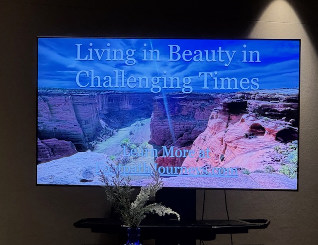 She explained her people are the Diné people (clan of Navajo) and her upbringing was known as Beauty Way. She told antidotes…how her people would introduce themselves including four pieces of information: first your clan name, then where you come from, who your grandparents are, and finally your name. She told how a baby’s name was whispered into to baby’s ear and not revealed to the community for a long time, how they would hold a celebration for the baby’s first laugh, and many more.